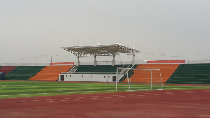 看臺(tái)上跑道、足球場(chǎng)全景